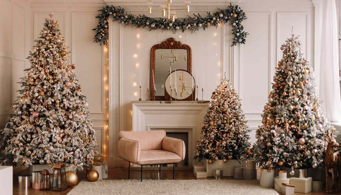 If you’re tired of “everything everywhere,” choose one color and commit. White, silver, champagne, black, or blush pink—monochrome trees look surprisingly elegant and high-end.