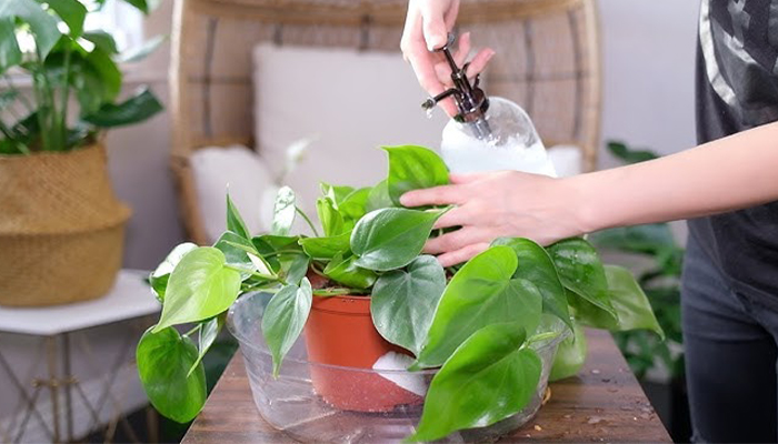 Watering the Heart-Leaf Philodendron